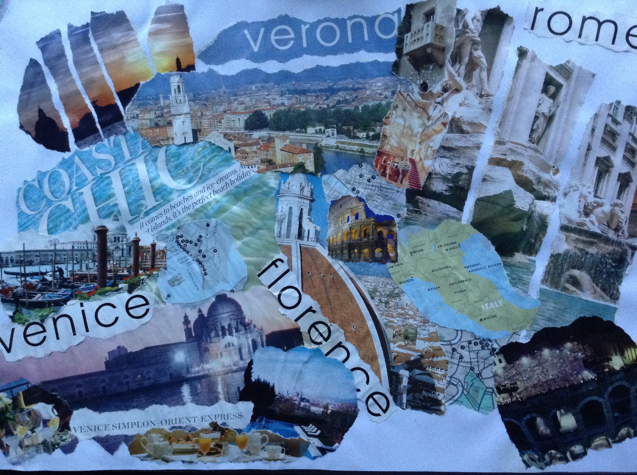 Glancing through some of my photos taken over the past year I came across this page in an old sketch book. I produced this collage from old travel brochures and was pleased with the end result. The idea was to focus on my desire to go to Italy … it’s still on my list of things I aim to do!